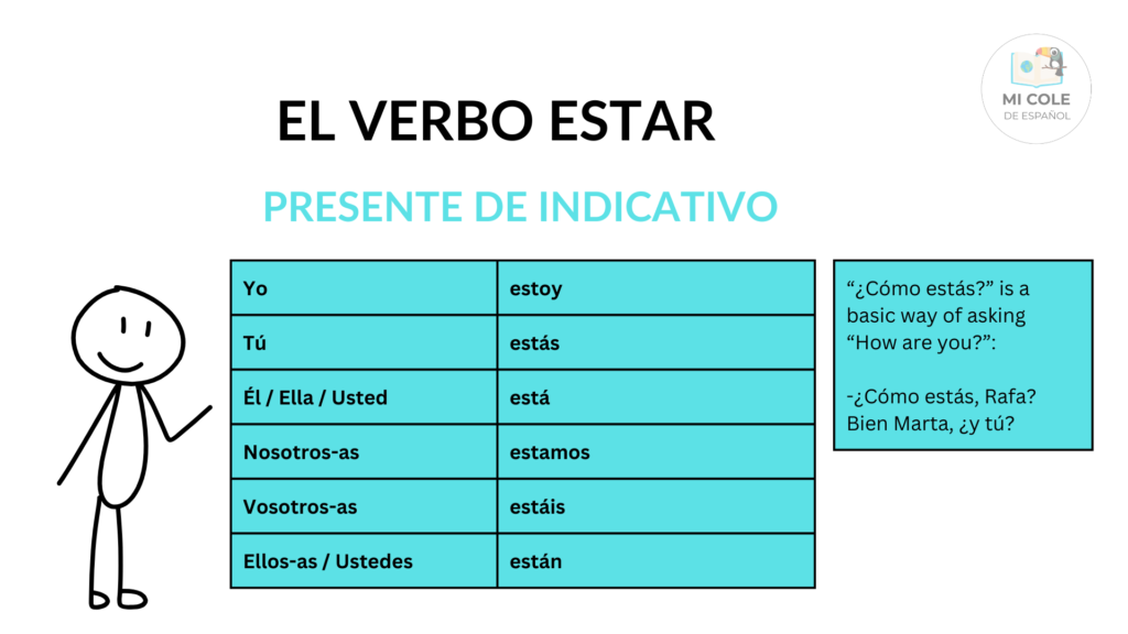 While the verb SER is used for permanent characteristics, ESTAR is used for locations, temporary states, and moods. A good way to remember it is: “How you feel and where you are, always use the verb ESTAR.”